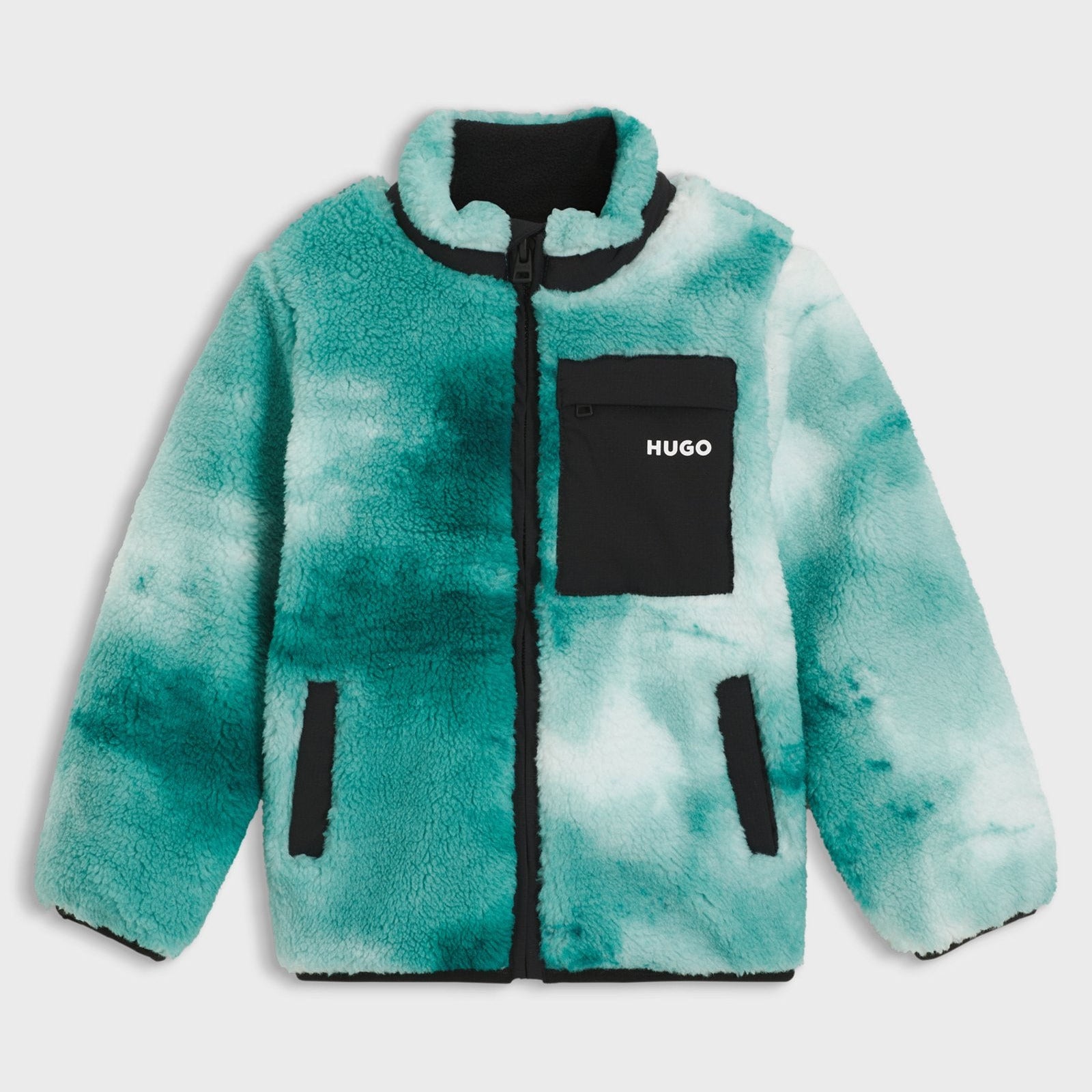 Cosy up in the colourful faux shearling of this HUGO Kids jacket. Logo print on the ripstop chest pocket. Two side pockets. Contrast zip closure.