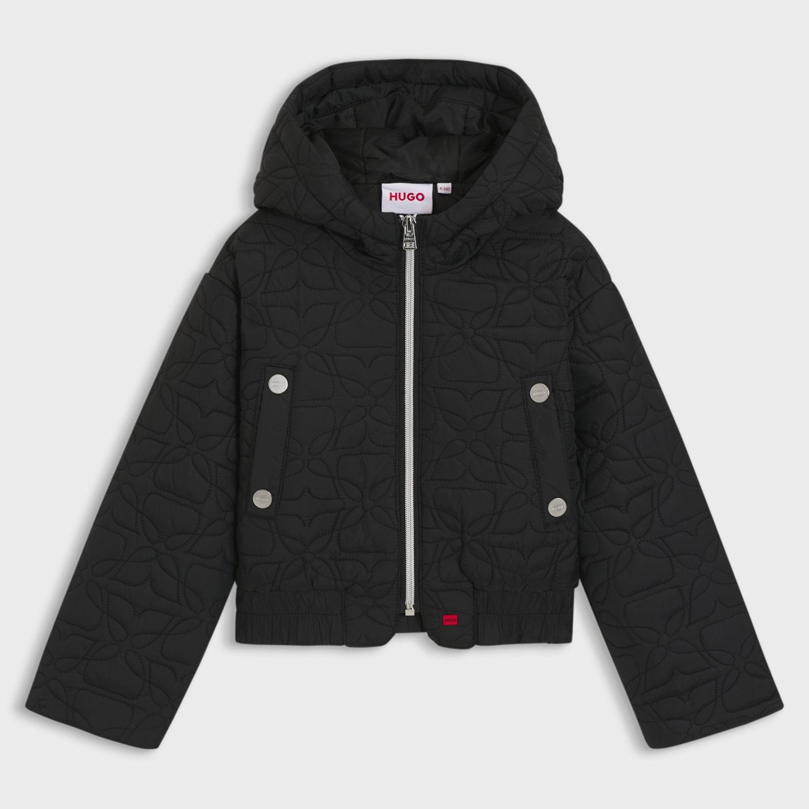 With press-stud side pockets and warm padding, this HUGO Kids hooded jacket is a must for the changing seasons. Zip closure. Elasticated hem.