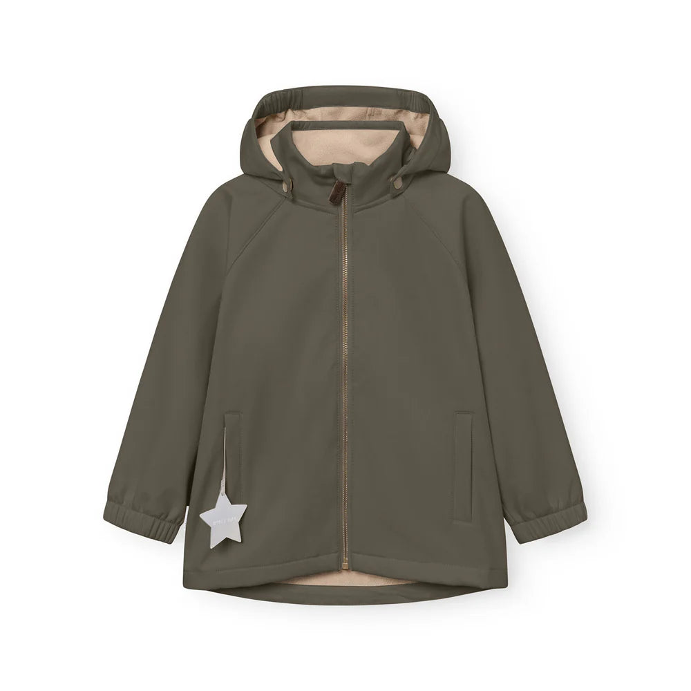 MINI A TURE softshell jacket with practical pockets and detachable hood for a trendy look. Adjustable waist at the back for better fitting. MINI A TURE reflex star is placed in the pocket, and the jacket has a small reflex logo at the back. The softshell material consists of three different layers gathered into one fabric - an outer material, a membrane that makes the fabric windproof and water repellent, and a backing in soft fleece. The jacket does not have taped seams, but the material is highly water repellent.