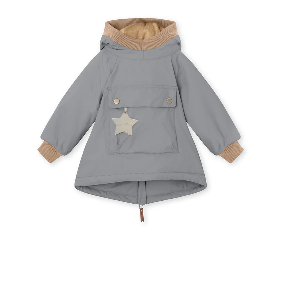 Winter anorak for baby & toddler. Wind and waterproof, breathable, and warm enough for a very cold winter. The zipper at the back goes all the way up into the sewn-on hood, making the anorak easy to put on and take off. Buckles on the sleeves allow for attaching MINI A TURE mittens and gloves. Lined with a soft and warm fleece, ensuring the child can stay warm for hours.
