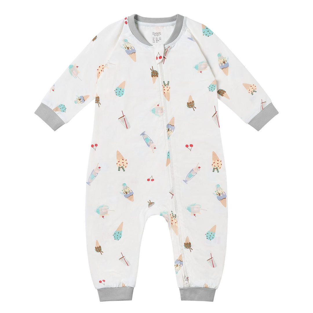 Nest Designs Kids/Baby 0.6 TOG Long Sleeve Footed Sleep Suit (Bamboo Pima) - Ice Cream Summer