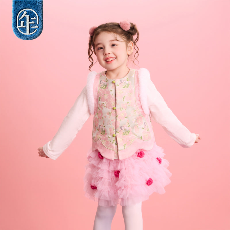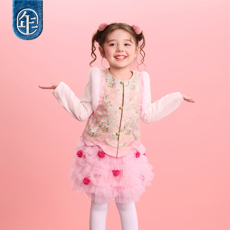 >Nian 年衣 华年小景中式马甲 - 粉绿