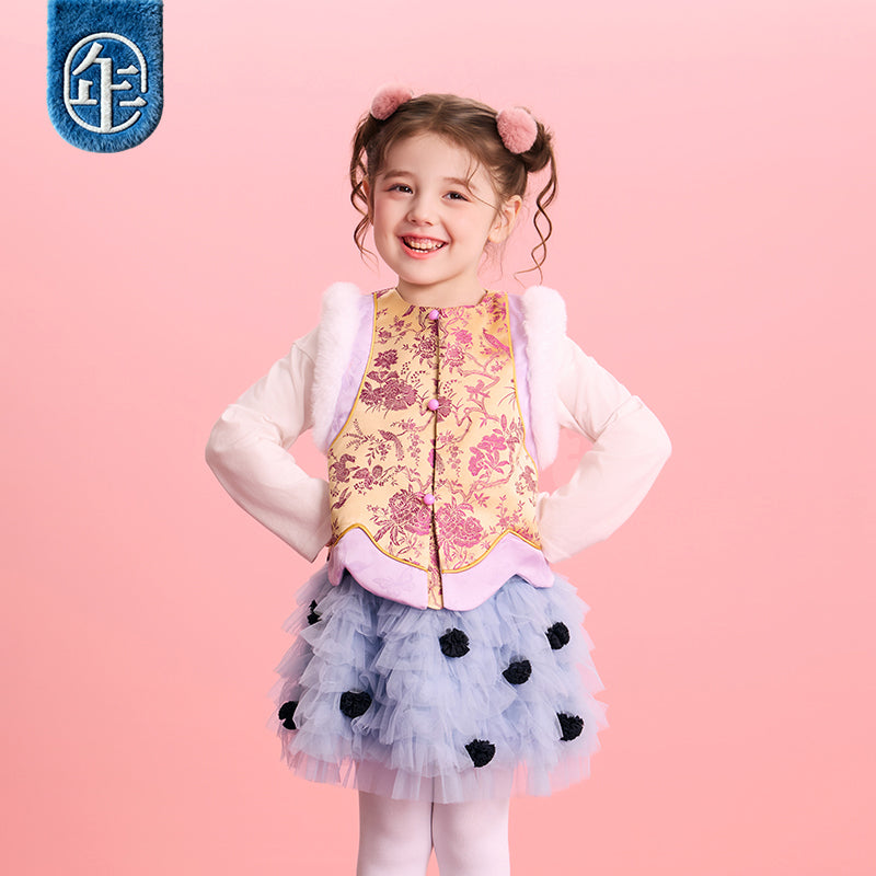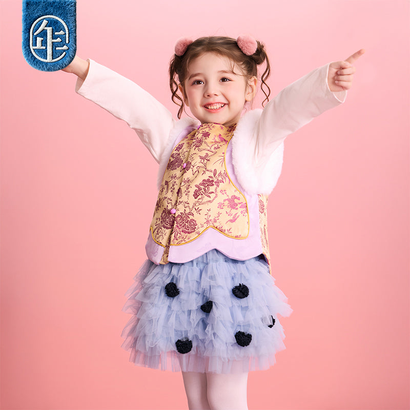>Nian 年衣 华年小景中式马甲 - 杏仁黄