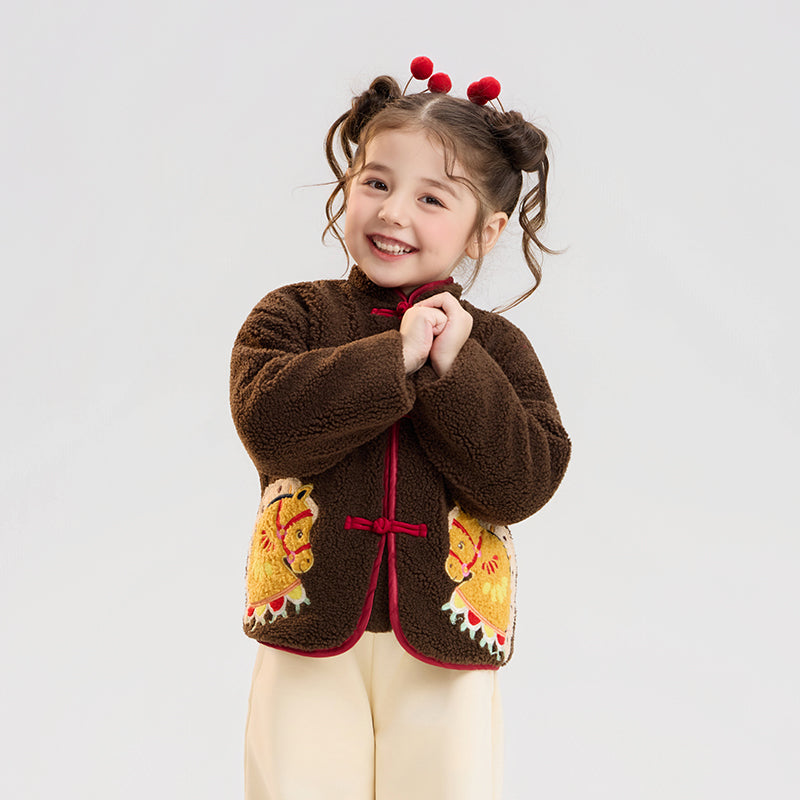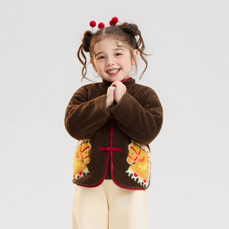 >Nian 年衣 喜乐戏马加绒外套 - 岩石棕