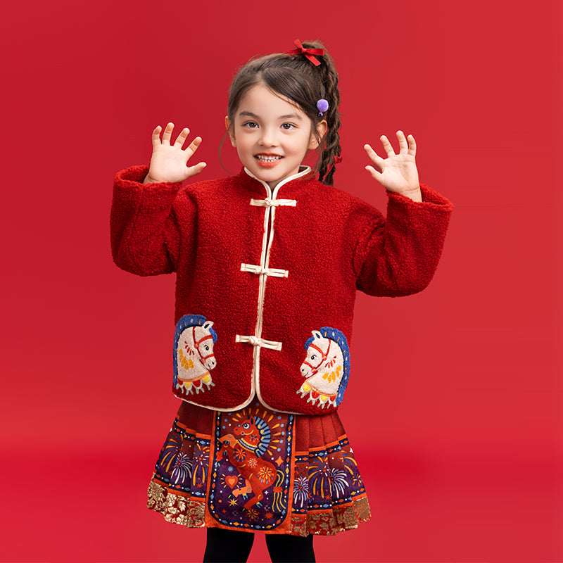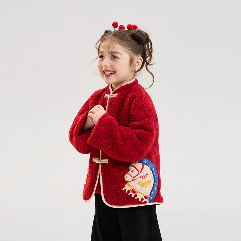 >Nian 年衣 喜乐戏马加绒外套 - 年衣红