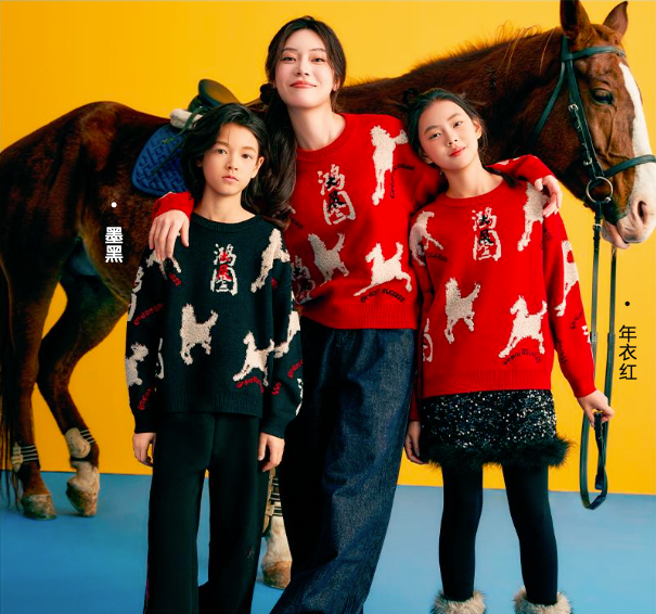>Nian 年衣 成人亲子款 鸿图群奔毛衣 - 墨黑