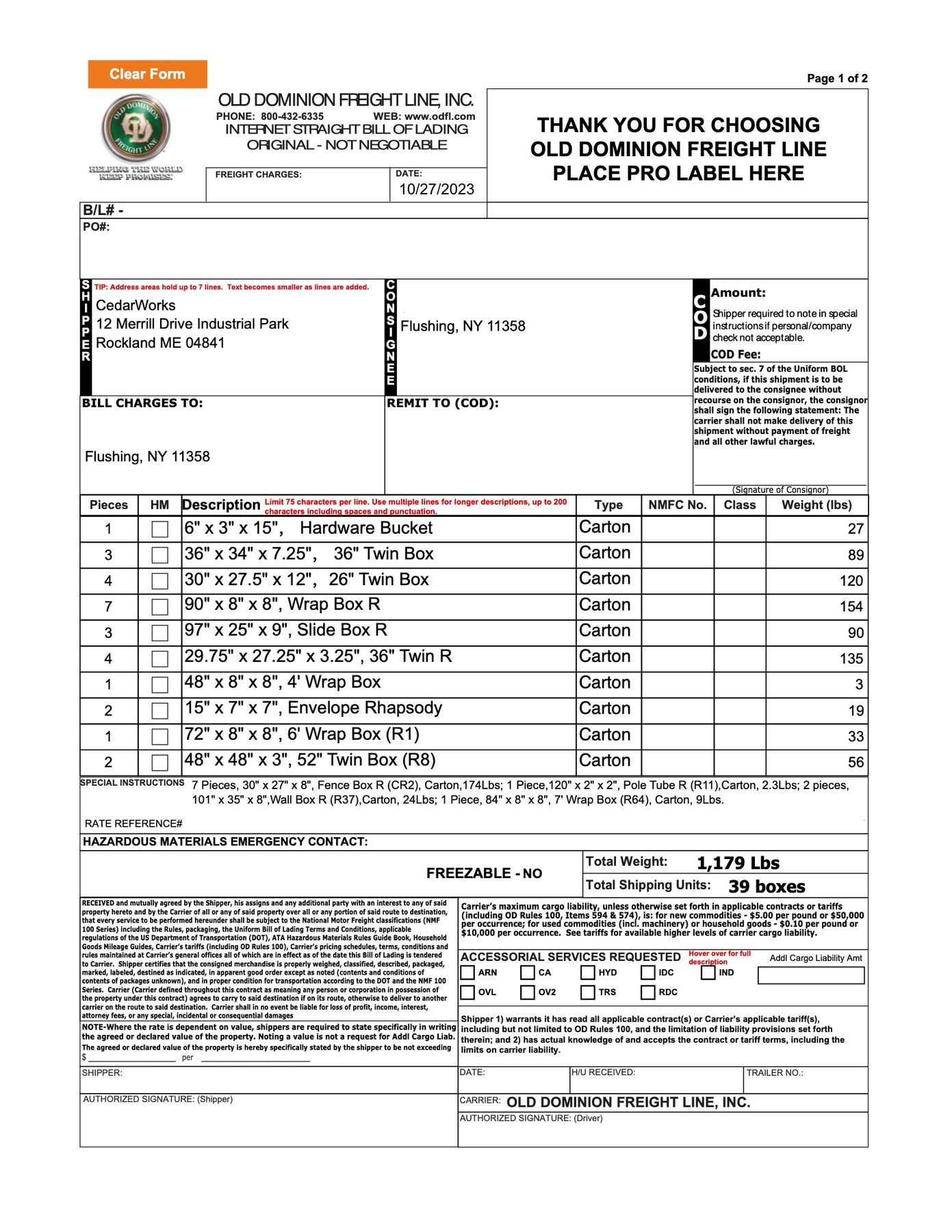 Total weight is 1179 Lbs
