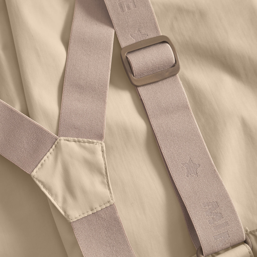 MINI A TURE outdoor pants with 10-year guarantee for the bigger kids. The pants have adjustable and detachable suspenders with logo embroidery, elastic waist, and removable footstraps with MINI A TURE logo. A small reflex logo at the back of the leg. The pants are made from durable, recycled nylon and fits perfectly with MINI A TURE jackets.